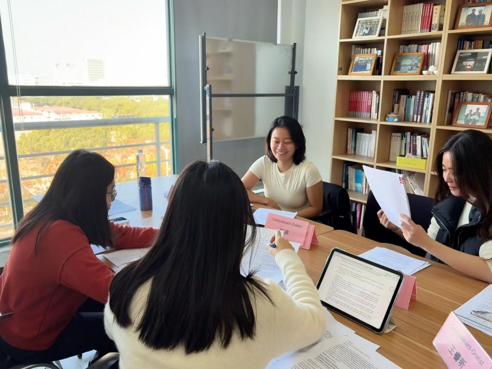 在口头答辩阶段,全体队员开始驻校备赛,分工撰写口头陈述稿,并抓紧一切时间搜索资料与模拟演练。比赛前夜,几位口头辩手练习至凌晨一点多成为常态,力求熟悉所有可能的问题与回应思路,确保在庭审中从容应对专家组的提问。总体上,在口头辩论环节,队员们沉着冷静、应对流畅,展现出良好的国际法素养与英语表达能力,赢得了评委们的一致认可。