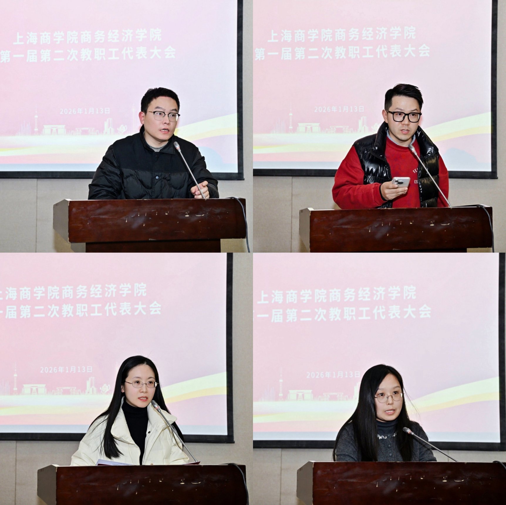 随后,大会依次听取和审议《商务经济学院2025年度学院工作报告》《2025年经费执行情况及2026年度预算申报情况说明》等11项报告和文件草案。李志刚院长重点就《上海商学院商务经济学院“十五五”发展规划纲要(讨论稿)》《商务经济学院教师岗位分类管理及考评细则(讨论稿)》作编制和修订说明。综合办公室主任贾婧婧就《商务经济学院教职工考勤管理办法(讨论稿)》《商务经济学院文印业务管理办法(讨论稿)》作制定说明。