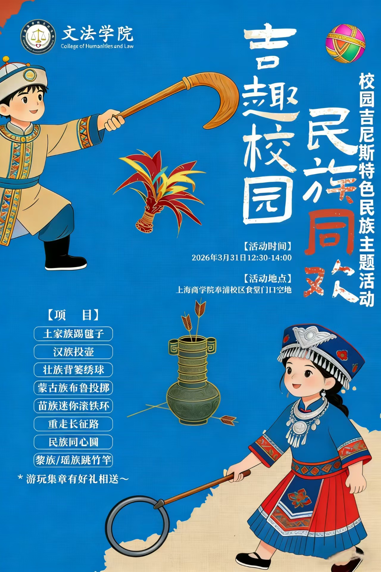 为深入学习贯彻习近平总书记关于加强和改进民族工作的重要思想,以文化育人夯实民族团结进步教育根基,切实铸牢中华民族共同体意识,3月31日,由文法学院团委主办的 “吉趣校园・民族同欢” 校园吉尼斯特色民族主题活动顺利开展。活动以民族传统体育文化为纽带,搭建多民族文化交流互鉴平台,引导各民族学生在沉浸式体验中增进文化认同、凝聚团结力量,营造了各民族师生像石榴籽一样紧紧抱在一起的校园氛围。