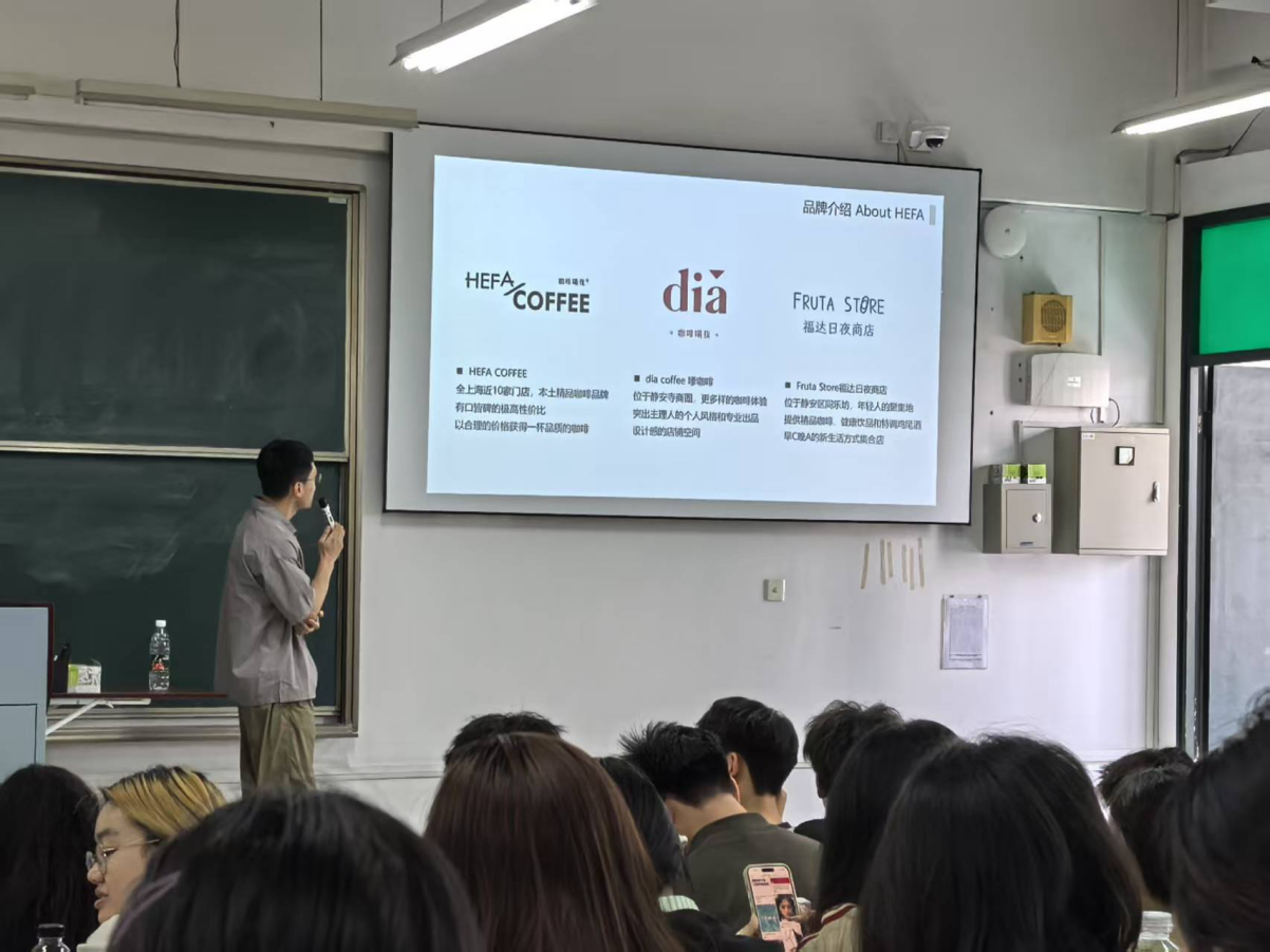 工商管理学院以提升应用型人才培养质量为核心,持续加强校企合作,推动产教融合的课程教学改革建设。为了学生们更好地理解和应用营销理论知识,2025年4月9日下午,市场营销系教研组特邀上海本土知名品牌“咖啡喝伐”创始人田科专家入《市场营销学》课堂,现场为零售管理、市场营销、物流管理等专业学生讲授“新咖啡零售时代‘小而精+多品牌矩阵’运营逻辑”课程。此次课程通过田科总经理分享其近十年来品牌运营经历,为同学们从企业真实实践视角,深入讲解目标顾客市场细分、多维品牌矩阵构建思路以及团队运营等策略。