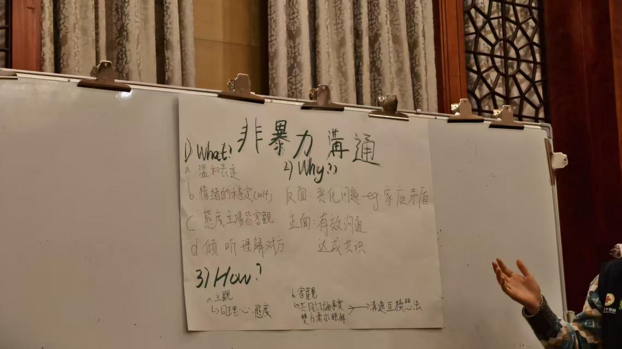 在为期6天的培训中,郑颖全程认真投入,通过理论学习、情景模拟、技能演练等各项活动,完成从“项目参与者”到“同伴教育者”的身份转变,为后续学校开展“青春善言行”活动筑牢基础。