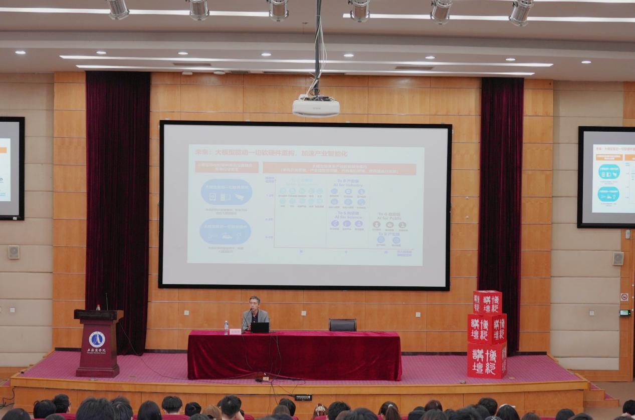2025年4月15日,以“人工智能技术趋势及行业场景融合”为主题的“博·约讲坛”在2号教学楼130报告厅举行。本次讲座由信息化办公室和校团委联合举办,同时作为上商“数字阶梯”计划系列讲座的第二讲,特邀阿里巴巴集团(上海)党委副书记,阿里云上海政企解决方案总经理张振华担任主讲人,为师生们带来一场关于人工智能与行业融合的精彩分享。讲座由校团委兼职副书记邹亚妮主持。