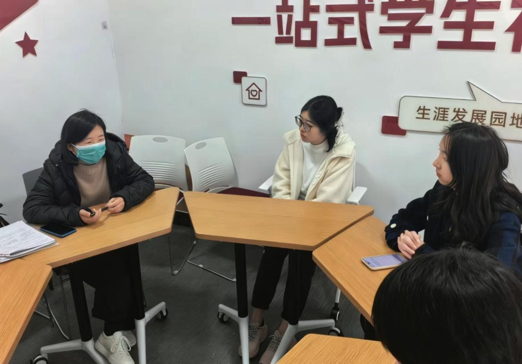图为专业老师为同学们答疑