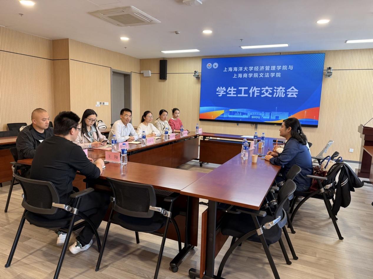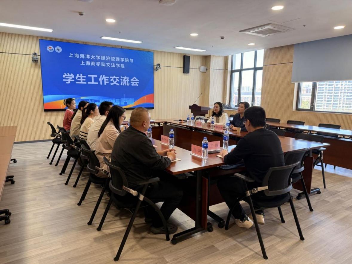图为上海商学院文法学院与上海海洋大学经济管理学院学生工作交流