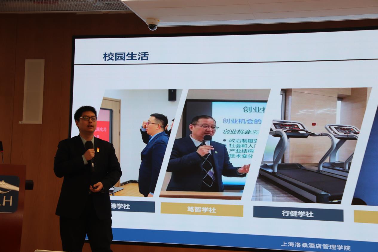 接下来由在校优秀学生代表朱恩良带来了最真实、动人的“洛桑故事”。作为学长,他生动分享了自己在学院的学习生活、社团活动、社会实践及行业经历。他坦言,正是这些充满挑战的实践,让他迅速从青涩学子成长为具备专业自信与解决问题能力的准职业人。