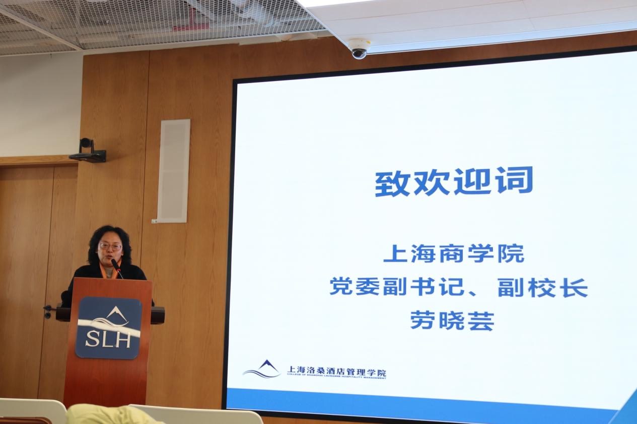 上海商学院党委副书记、副院长劳晓芸首先代表学院致欢迎辞。上海洛桑酒店管理学院作为中瑞教育合作的标杆,自创立之初便肩负着培养未来行业领袖的使命。学院植根中国,融通国际,致力于打造独具特色的“东方洛桑”模式,为新时代的青年才俊提供实现梦想的卓越平台。 劳晓芸以家长和考生最关心的三个问题:学校怎么样、学习怎么样、和学生怎么样入手,让家长和学生对学院的整体环境有了更加全面的了解。在欢迎辞最后,劳晓芸寄语与会考生及家长:如果你热爱生活,就来上海洛桑。