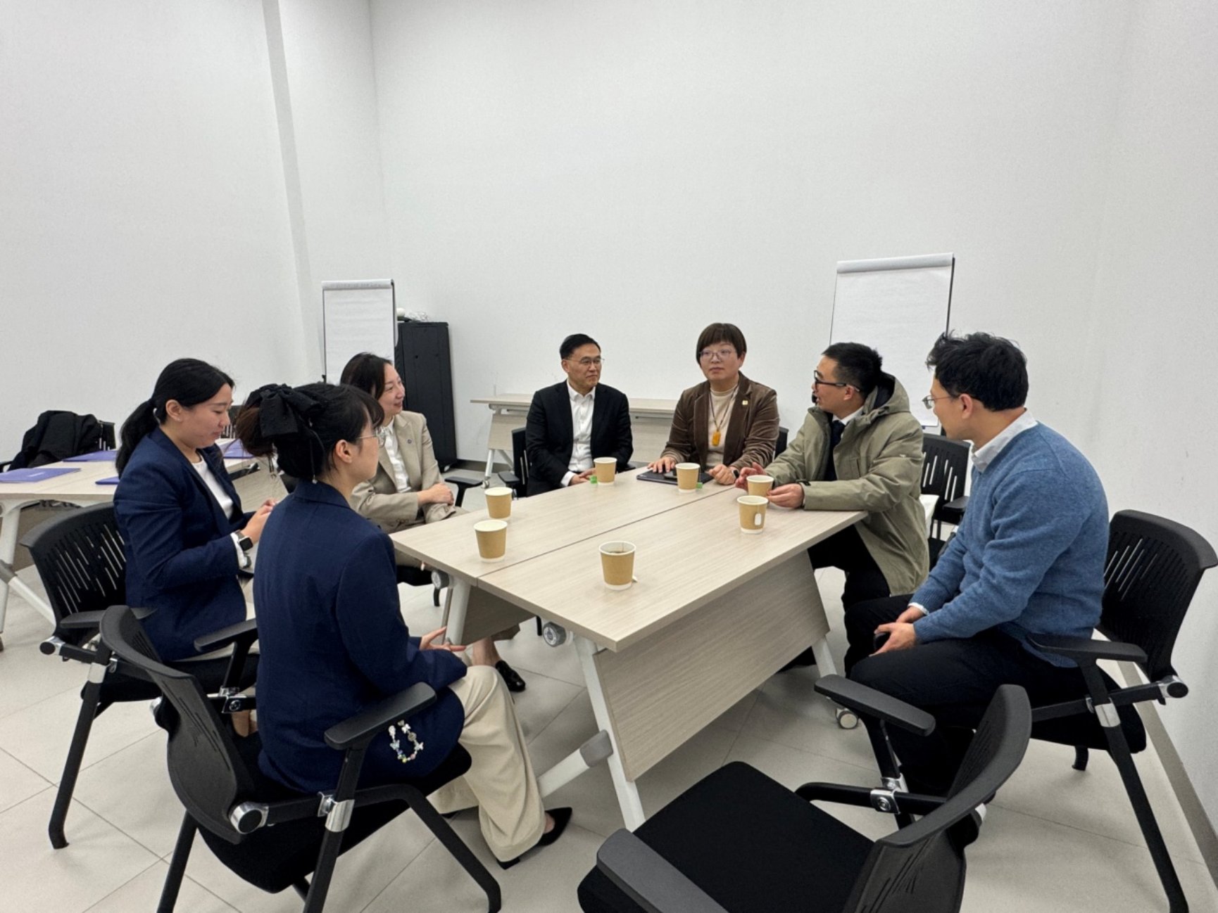 座谈交流环节,张校长对学校开展的具身人工智能在酒店行业的应用探索进行了分享,胡院长介绍了学院2026届毕业生情况,席院长介绍了学院的实习实践开展情况。酒店方对学院的人才培养给予认可,尤其肯定了“洛桑模式”在实践教学、素养培育方面的优势。她们表示,学院培养的学生专业功底扎实、实操能力突出、职业素养优良,期待学生们将在行业中实现更好发展。学院实习学生衷心感谢学校和酒店为自己提供的实习平台,并表示将在实习岗位上不断努力、提升能力。