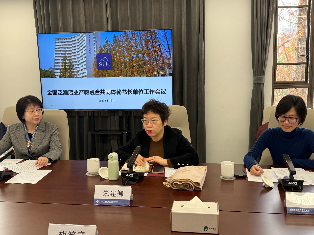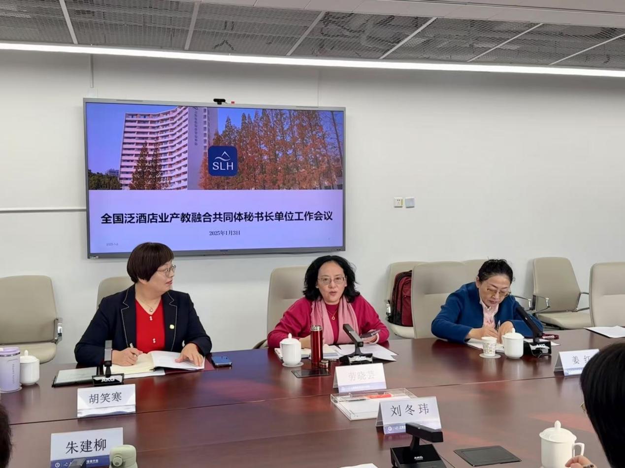 2025年1月3日上午,全国泛酒店业产教融合共同体秘书长单位会议在上海商学院漕宝路校区顺利召开。共同体理事长、锦江国际集团党委副书记刘冬玮、副理事长上海商学院党委副书记、副校长劳晓芸、上海南湖职业技术学院校长朱建柳、秘书长锦江国际集团人力资源总监袁晓莺、上海商学院酒店管理学院院长姜红出席会议,共同体相关单位代表参加会议。会议由秘书长姜红主持。