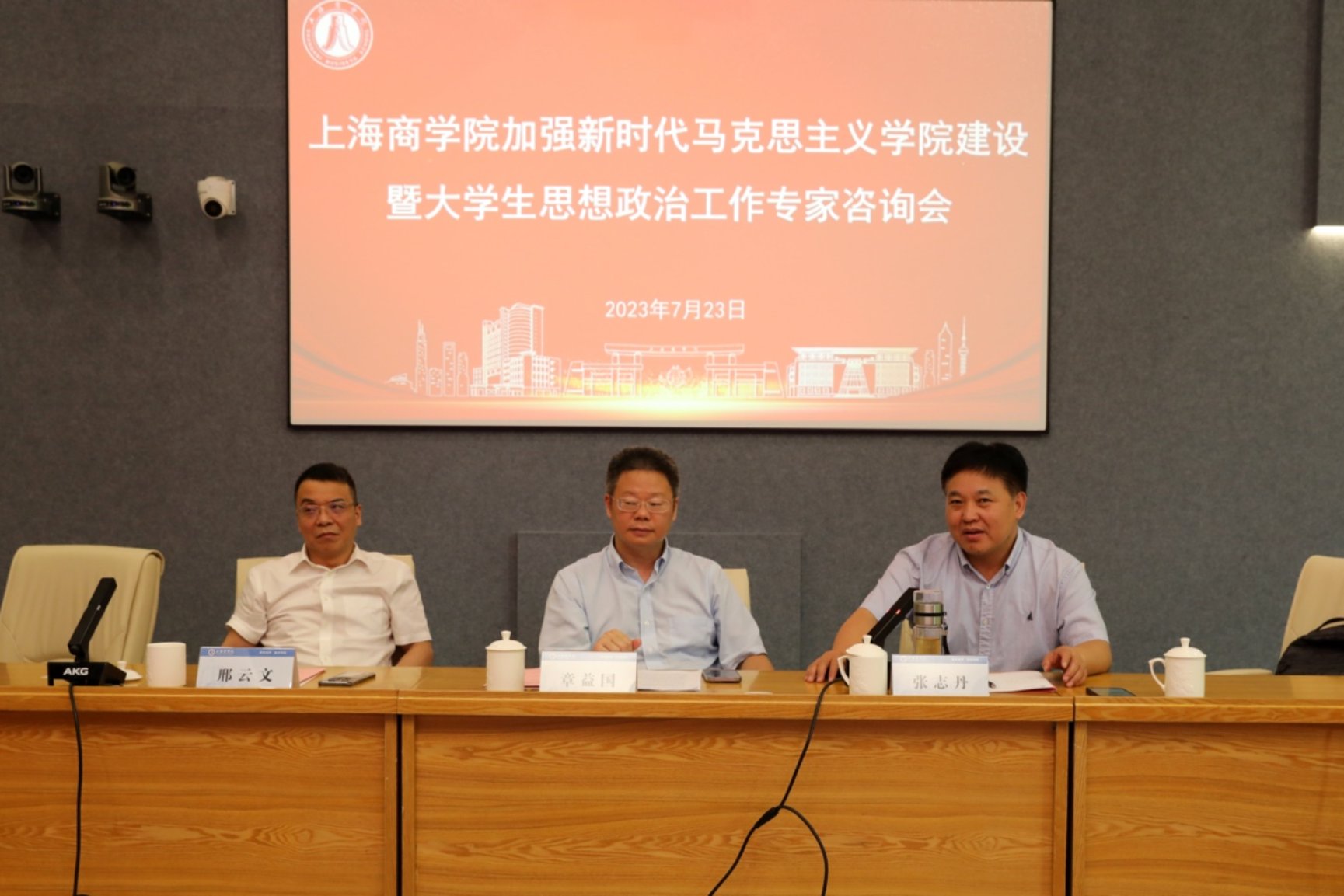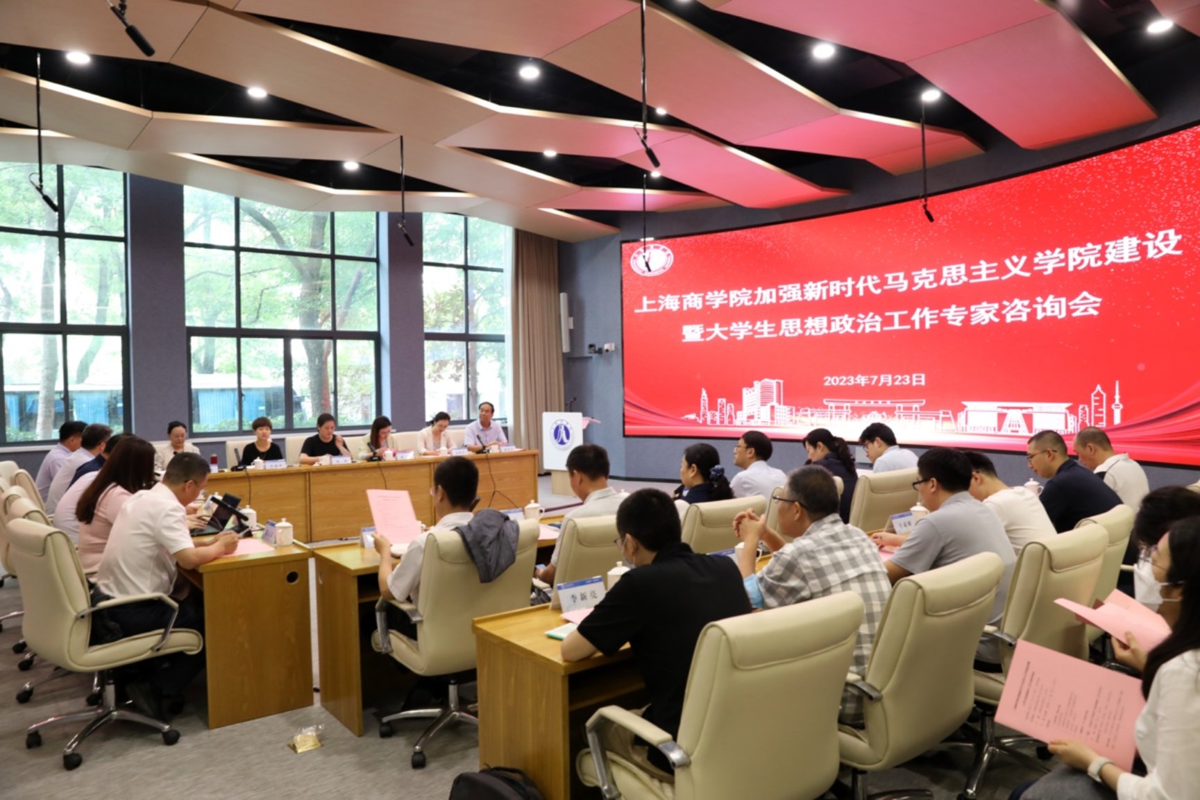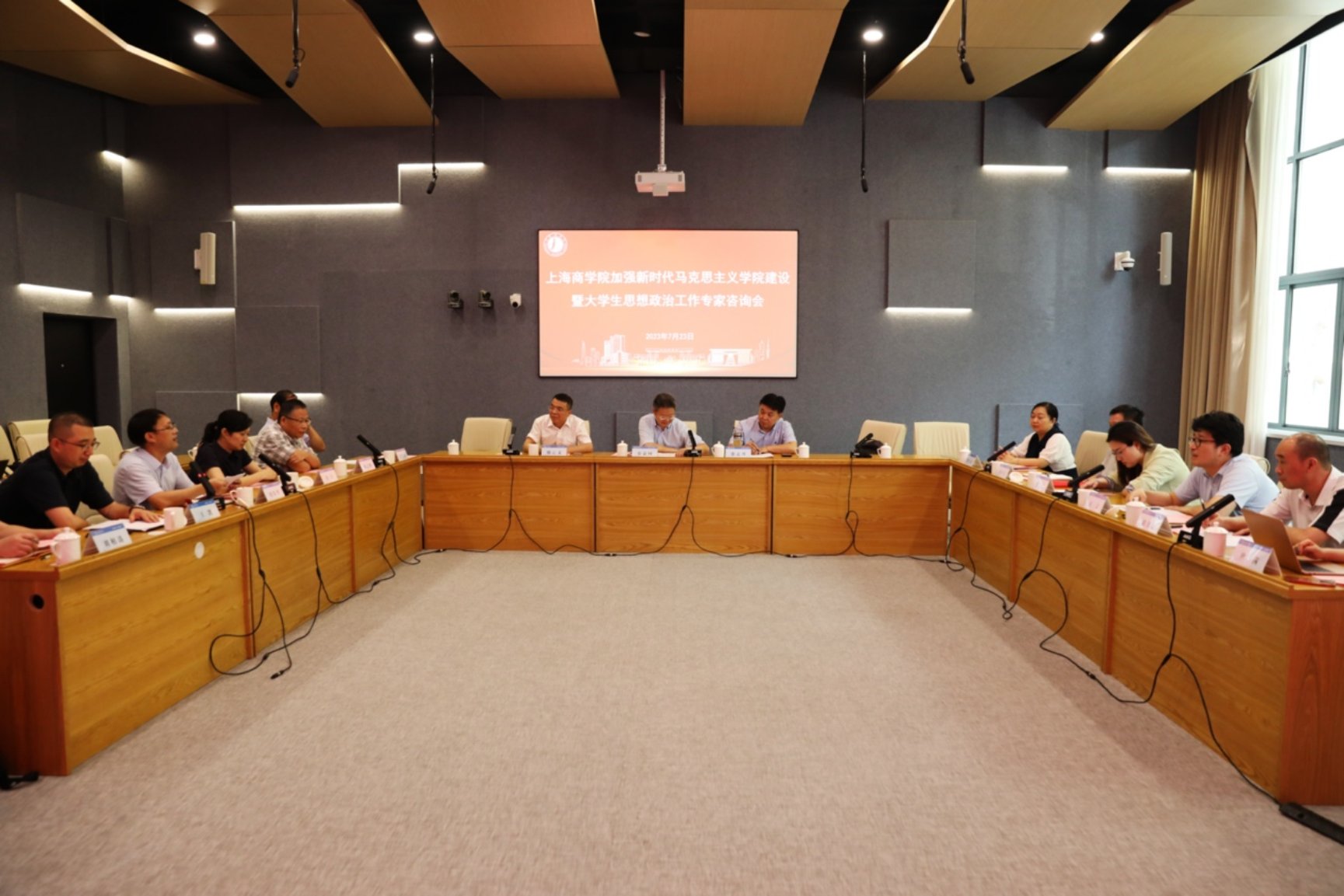 为深入贯彻习近平总书记关于加强学校思想政治工作的重要讲话精神,加强马克思主义学院建设,办好大思政课,推动学校思想政治工作高质量发展,7月23日,上海商学院加强新时代马克思主义学院建设暨大学生思想政治工作专家咨询会在徐汇校区召开。会议邀请中国教育学会副会长、中央马工程首席专家、教育部高校思政课总教指委主任委员杨晓慧,上海对外经贸大学党委副书记、纪委书记章益国,上海市教委德育处处长朱敏,上海交通大学马克思主义学院院长邢云文,上海师范大学马克思主义学院院长张志丹到会指导。校党委副书记、副校长劳晓芸、副校长陈剑峰、相关职能部门负责同志、马克思主义学院党政班子成员、教师代表,各二级学院党总支副书记、辅导员代表出席了本次会议。