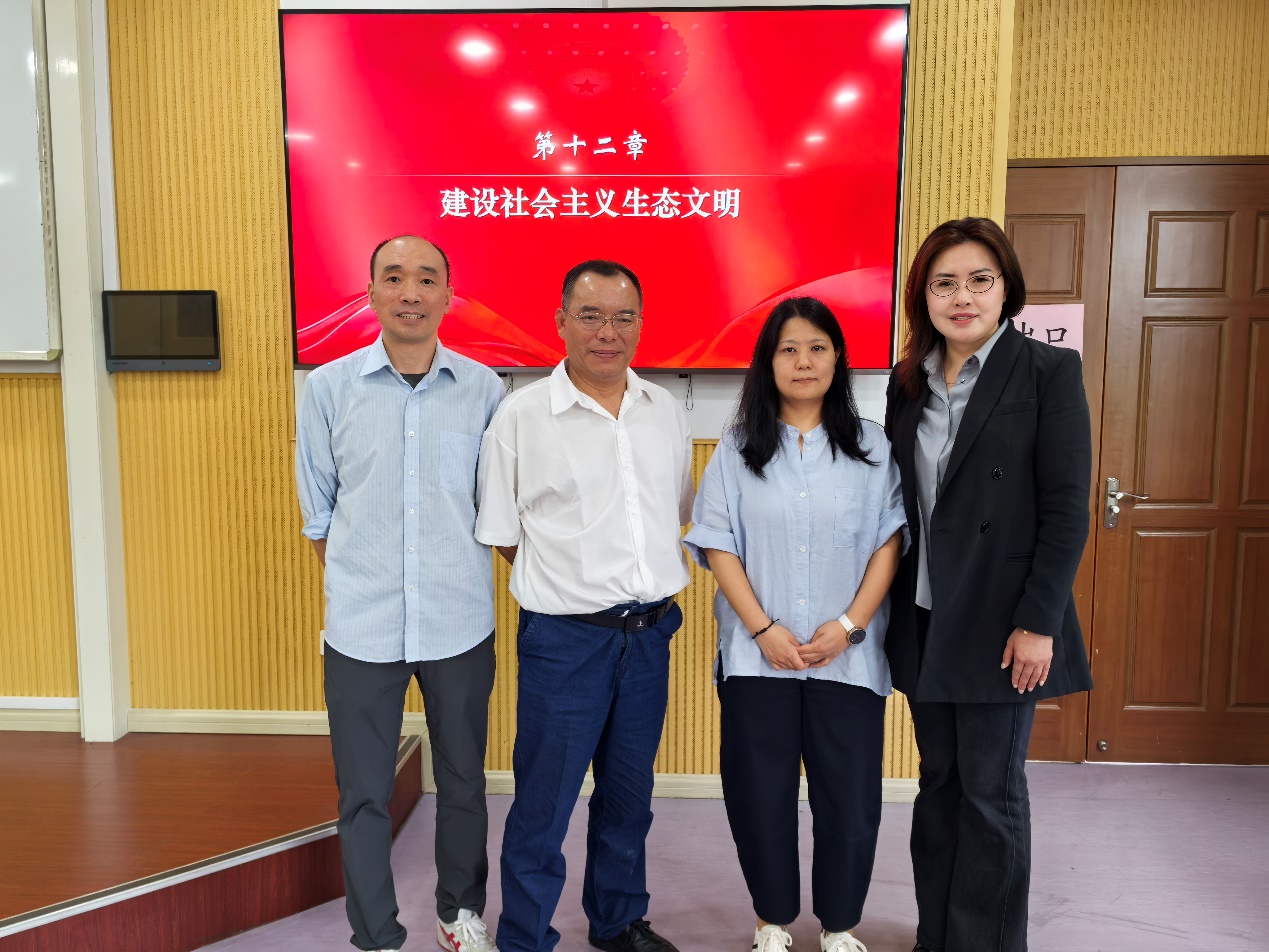 教学活动围绕《习近平新时代中国特色社会主义思想概论》第十二章“建设社会主义生态文明”的内容展开。首先,马克思主义学院副院长张冰进行导课,她从生态文明建设的重要性出发,引导学生思考新时代生态文明建设的三个重要问题:为什么要突出强调生态文明建设的重要性?我国要建设什么样的生态文明?如何建设美丽中国和共谋全球生态文明建设之路?