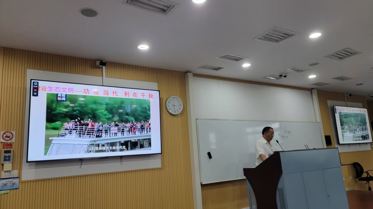 来自南昌航空大学马院的刘宣如教授,从习近平总书记的成长经历展开,深入浅出地讲述了他在主政宁德、福州、福建、浙江等不同历史时期关注生态文明建设的生动案例。让学生们深刻感受到习近平总书记对生态文明建设的高度重视和一以贯之的坚守,也让学生们认识到生态文明建设是关系中华民族永续发展的根本大计。