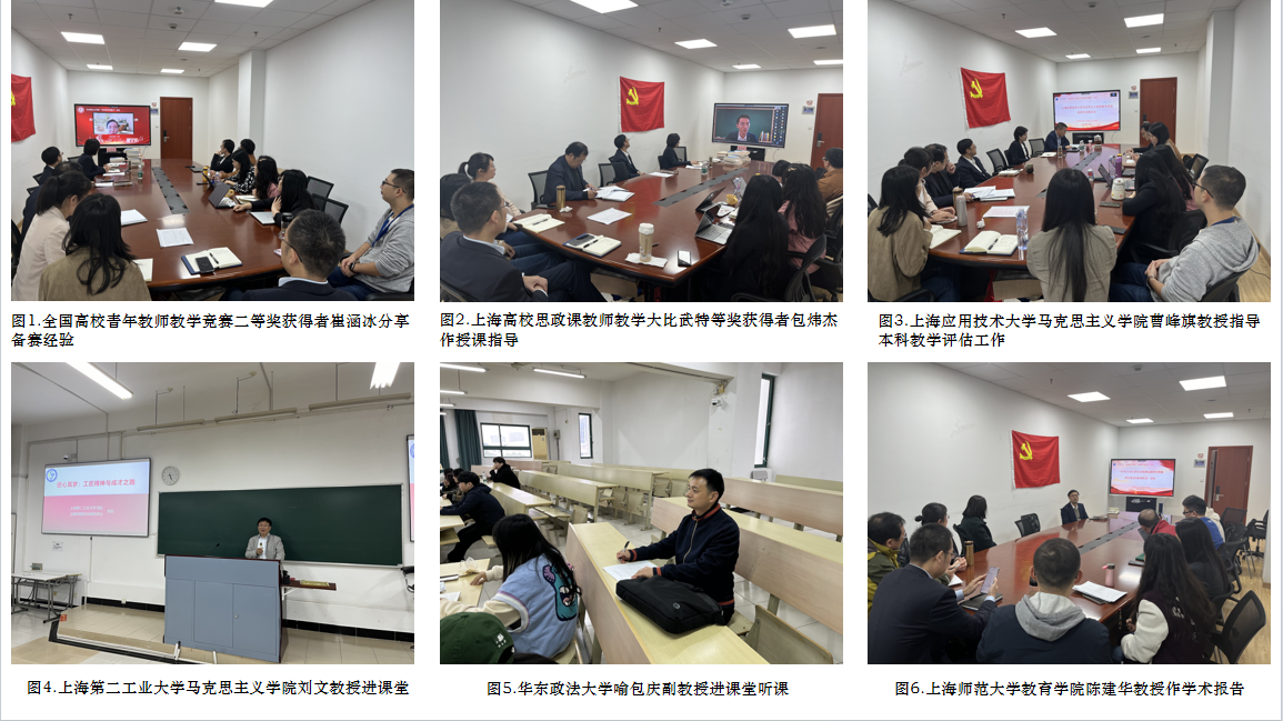 除常规教学资料检查等活动之外,马克思主义学院在质量月期间开展校内外专家听评课活动20余人次,邀请全国高校青年教师教学竞赛二等奖获得者崔涵冰上海市高校思政课教师教学大比武特等奖获得者包炜杰为老师传经送宝,谈谈如何上好思政课邀请上海应用技术大学马克思主义学院曹峰旗教授就本科教学评估工作进行指导邀请上海第二工业大学马克思主义学院刘文教授走进课堂与学生共话匠心筑梦工匠精神与大学生成才之路”;为实施教育家精神铸魂强师行动,加强师德师风建设,提高教师培养培训质量,培养造就新时代高水平教师队伍,由上海师范大学教育学院陈建华教授为老师们做了题为应为与可为:教育家精神是新时代教师教育建设的精神根基的学术报告,解读习总书记关于教育家精神的讲话,做好“四个引路人”的论述。