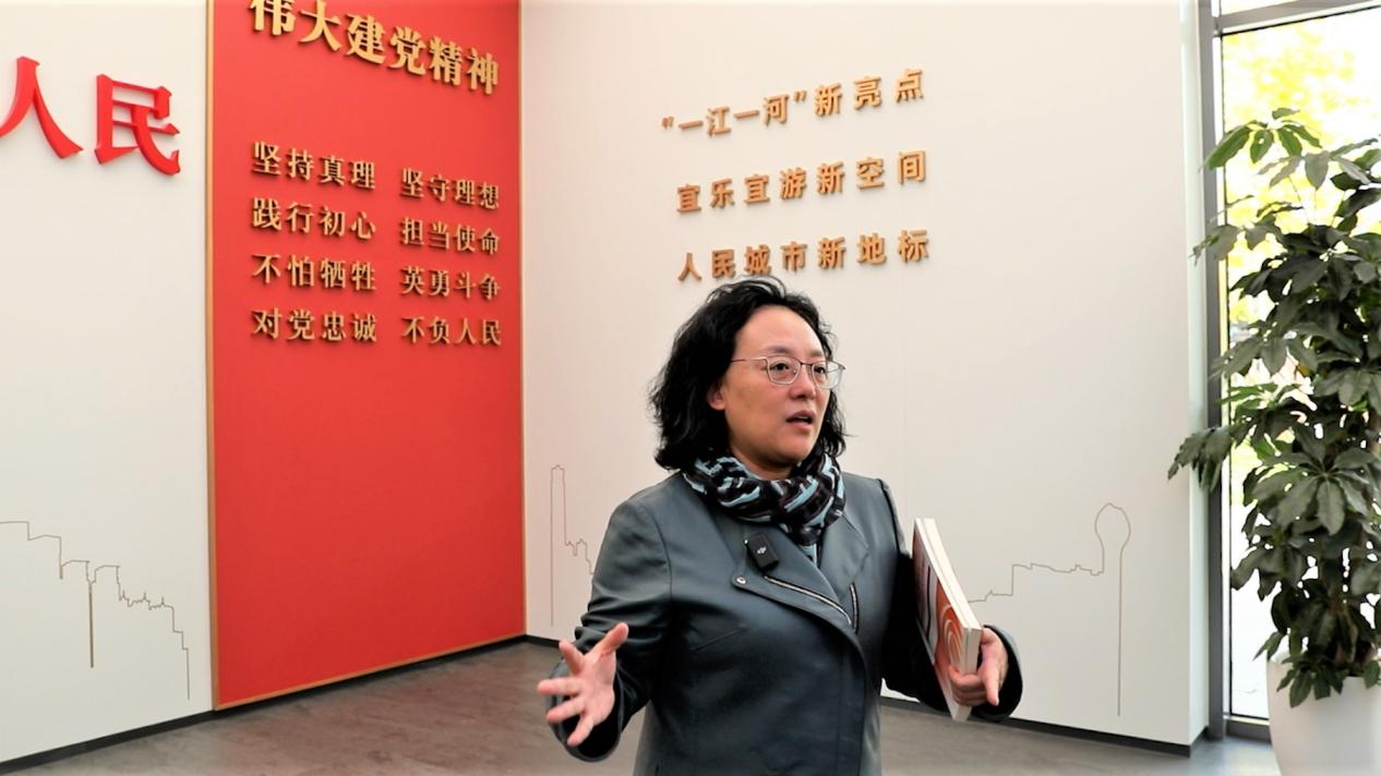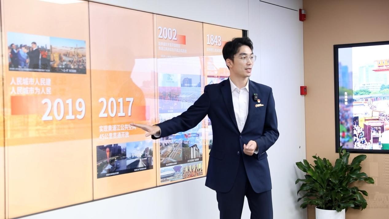 (图为徐汇滨江党群服务中心讲解员为师生讲解)