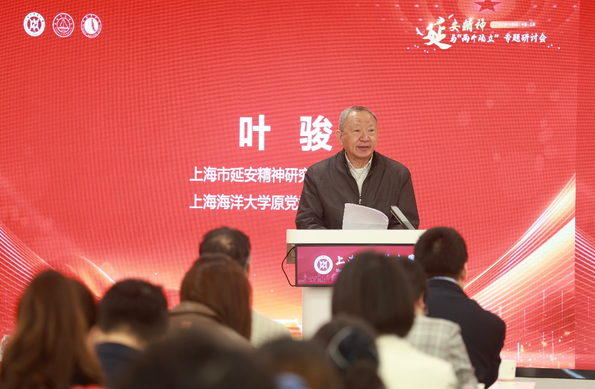 上海市延安精神研究会名誉会长、上海海洋大学原党委书记、教授叶骏在开幕式致辞中对研讨会的举办表示祝贺。他指出,要进一步深化对延安精神与“两个确立”内在联系的认识,让延安精神在新时代绽放新的光芒,让“两个确立”的决定性意义转化为奋进新征程、建功新时代的强大动力。