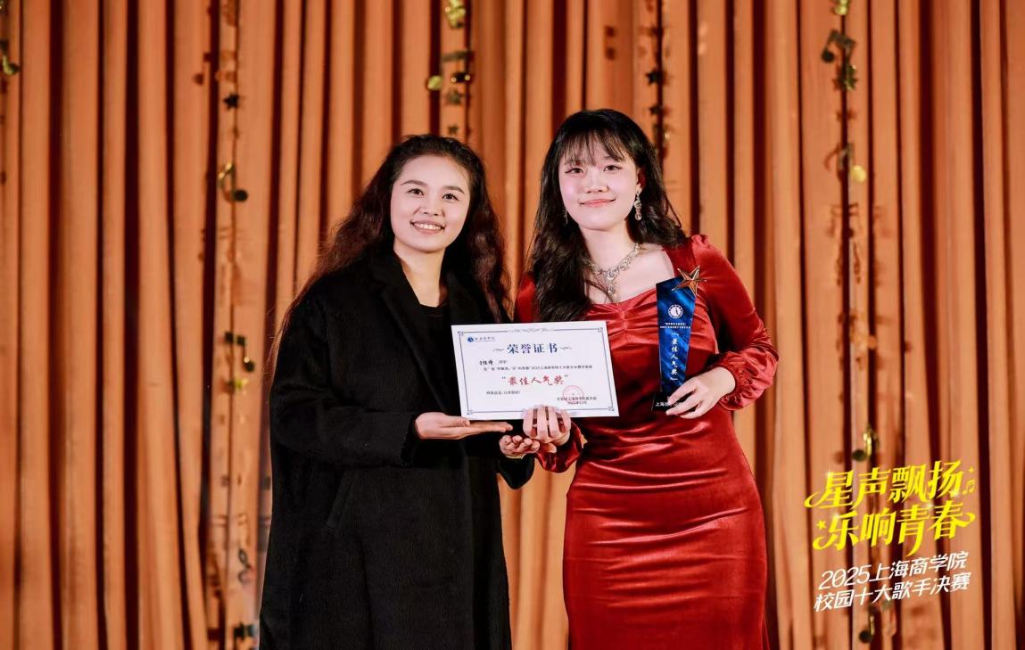 经过多轮角逐,赛事各奖项尘埃落定。于佳泽获“最佳人气奖”,诸轩池、黄一飞、张沛垚、奚羽彤、王悠、戎雪薇获“优胜奖”,丁志翰、董婕、耿婷婷、陆子轩、苏宇辰、王海江、叶鸿伍华、易佳玥、于佳泽、周祉欣十位同学获评2025年上海商学院校园“十大歌手”。