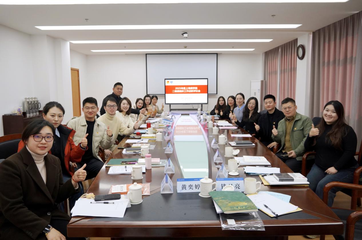 12月26日上午,上海商学院2025年度二级团组织工作述职评议会在徐汇校区1503会议室召开。党委副书记、副校长劳晓芸,党委学工部部长、学生处处长李爽,校团委全体、各二级学院(院区)团委书记参加会议。会议由校团委书记、党委学工部副部长卜树俊主持。