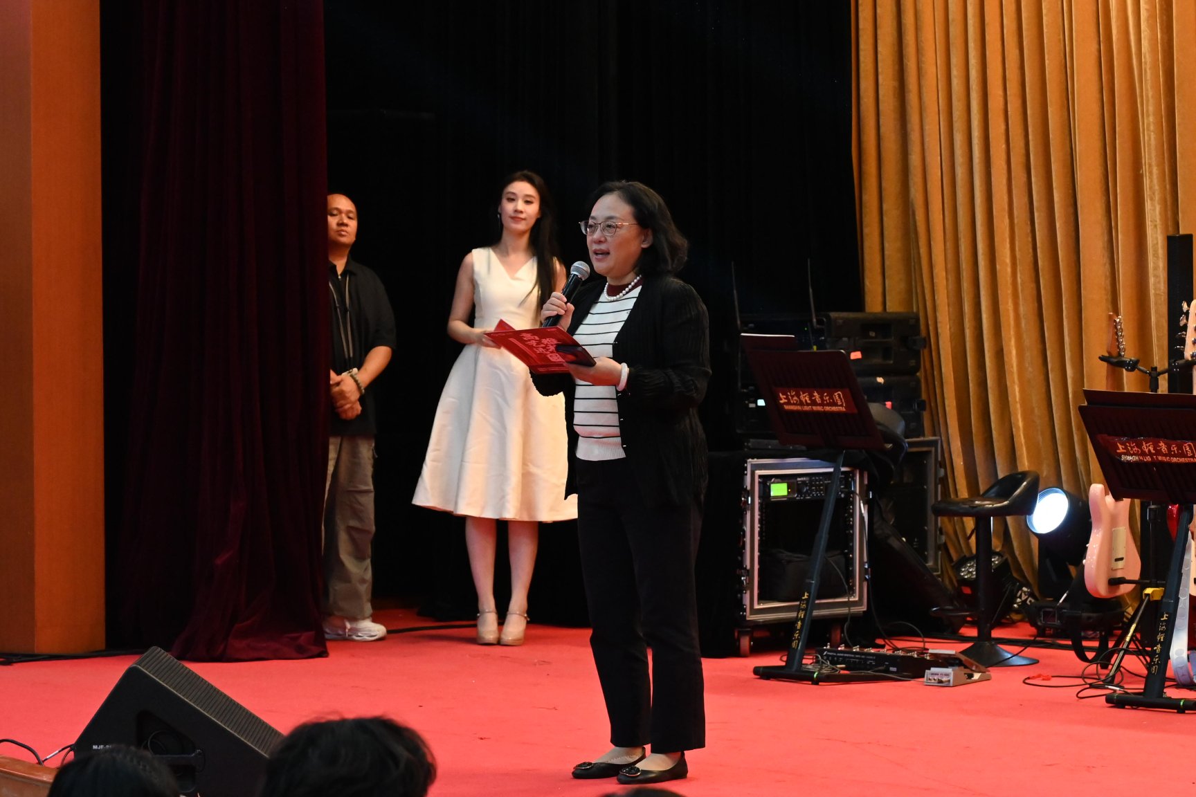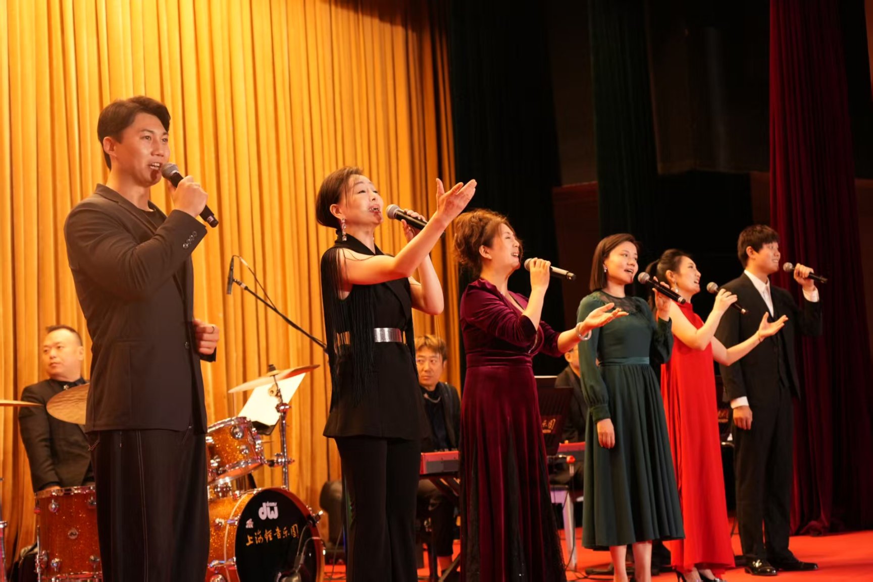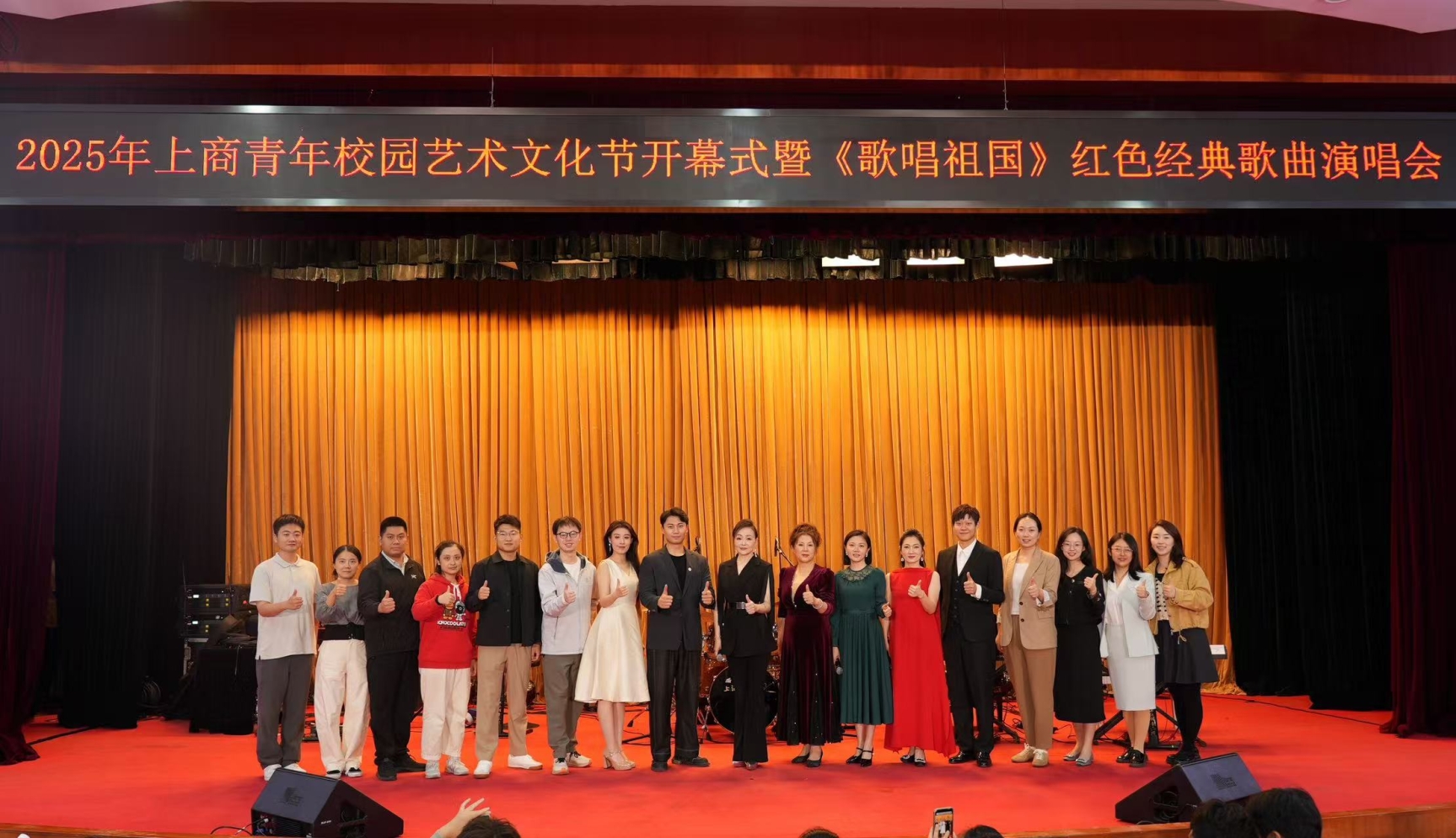 为进一步强化我校美育育人功能,积极搭建美育活动平台,10月20日晚,由上海商学院团委(大学生艺术中心)主办的2025年上商青年校园艺术文化节暨美育实践月正式开幕。上海轻音乐团携《歌唱祖国——红色经典歌曲演唱会》登台上海商学院。乐团通过经典旋律演绎与多元互动设计,以一场跨越百余年时空、融汇党史学习和艺术欣赏的殿堂级音乐盛宴,为本届校园艺术文化节拉开精彩序幕。校党委副书记、副校长劳晓芸,校团委书记、党委学工部副部长卜树俊,校团委副书记邹亚妮,校团委挂职团干部尹茜、董健鹏,各二级学院团委书记、社区居民代表、教师代表及六百余名学生参与开幕式活动。