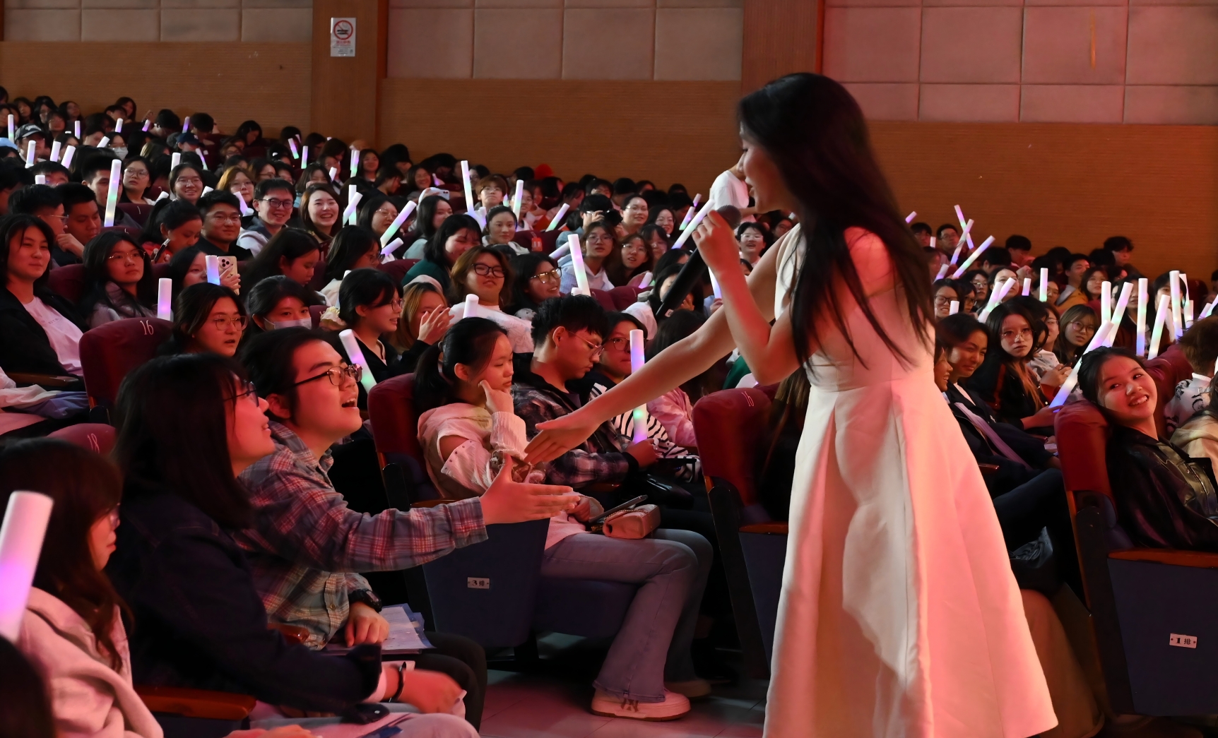 师生与歌唱家热情握手