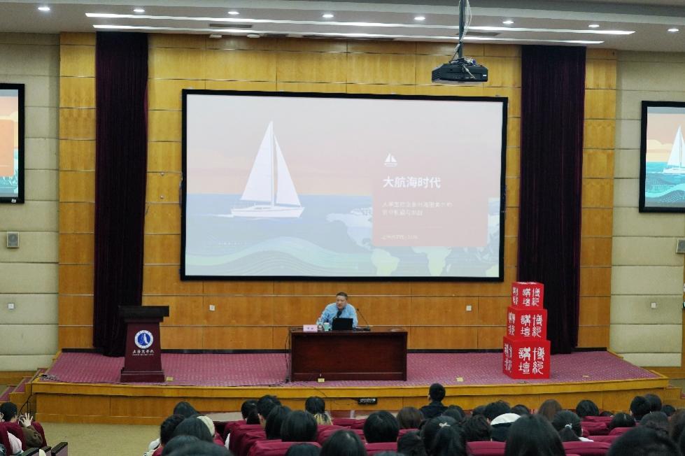 同时,林老师直击企业出海痛点,生动解读了市场、合规、人才等“九道坑”,并指出企业普遍面临不熟悉当地规则、跨文化人才短缺、服务成本偏高等问题,提醒出海需重视本地化运营与合规管理。面向我校商科学生,他推荐数字化营销、跨境合规、海外人力资源、供应链物流四大创业赛道,鼓励同学们塑造“T型人才”核心素养,依托上海区位优势,通过实习积累经验、以低成本试错探索出海服务机会。
