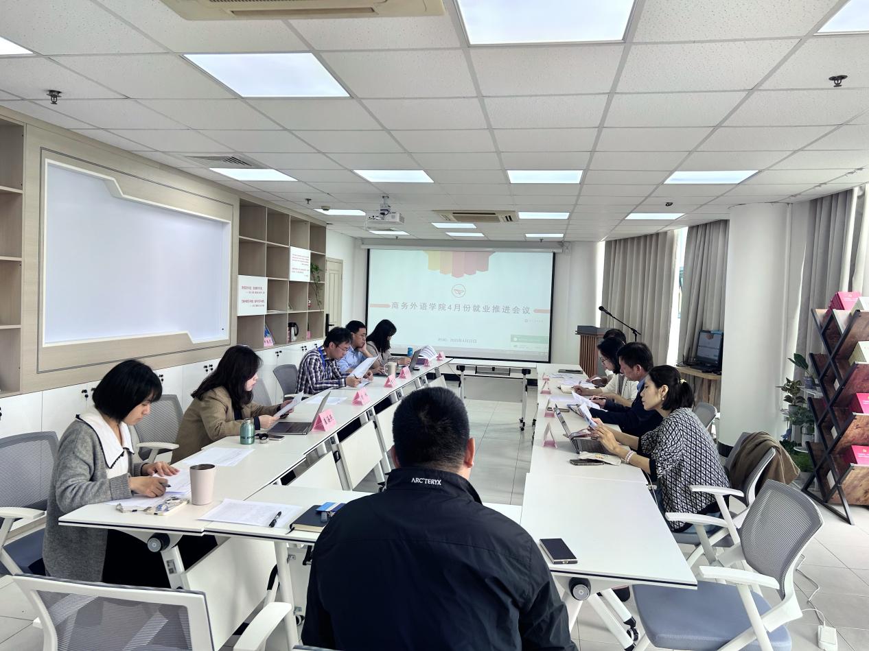 4月22日上午,商务外语学院在奉贤校区行政楼407会议室召开2025届毕业生就业工作推进会,学院领导班子成员、各系部主任、副主任、2025届毕业班辅导员、班主任参加会议。