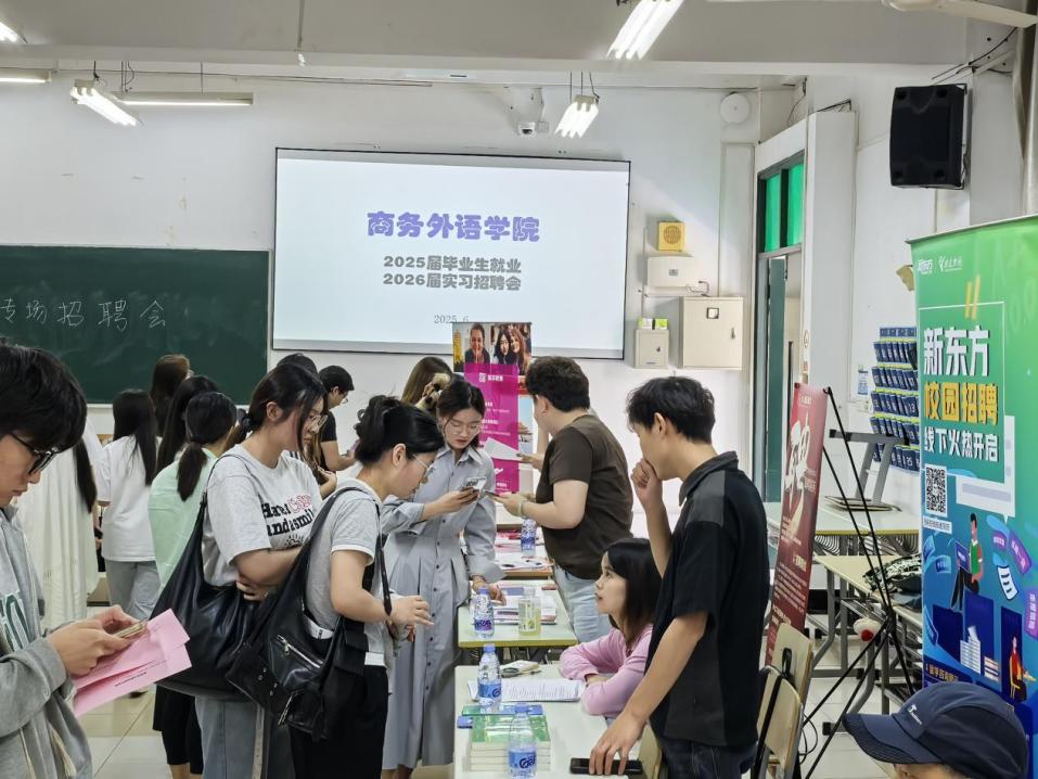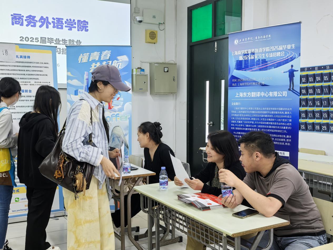 为切实做好商务外语学院学生就业实习工作,促进毕业生与用人单位的精准对接,商务外语学院于6月3日下午成功举办2025届毕业生招聘会暨2026届毕业生实习招聘会。此次招聘会在奉贤校区4号楼118、122教室举行,吸引了全校学生积极参与。