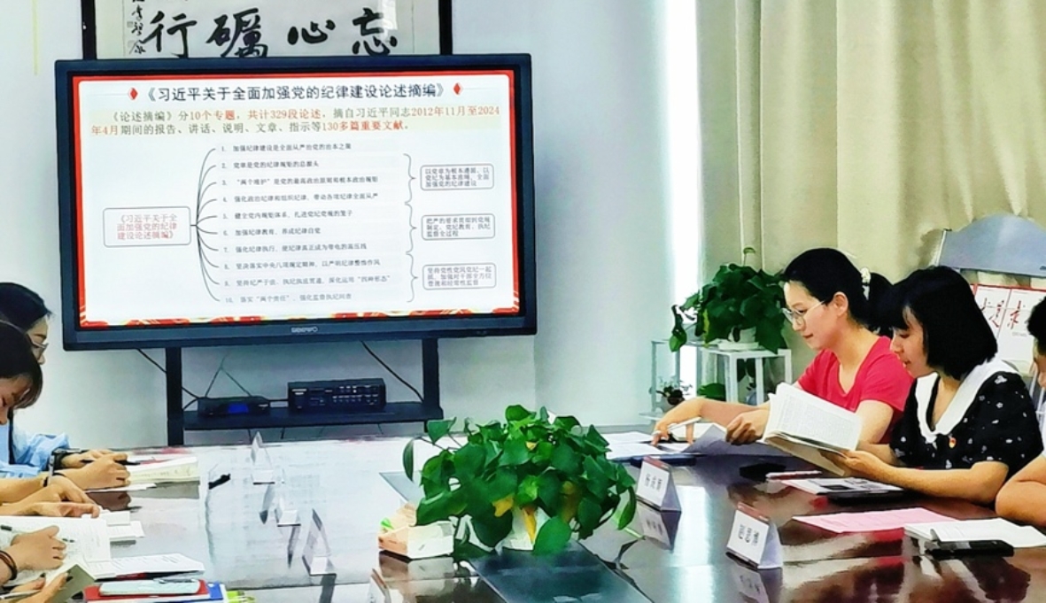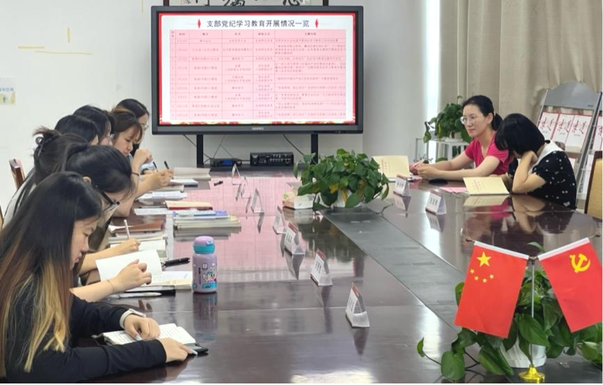 会上,支部书记杨悦领学了习近平关于贯彻落实新时代党的建设总要求的重要讲话精神。支部纪检委员杨成颖领学《习近平关于全面加强党的纪律建设论述摘编》。她从“加强纪律建设是全面从严治党的治本之策”、“以党章为根本遵循、以党纪为基本准绳,全面加强党的纪律建设”、“把严的要求贯彻到党规制定、党纪教育、执纪监督全过程”、“坚持党性党风党纪一起抓,加强对干部全方位管理和经常性监督”四个方面强调了认真学习领会习近平总书记重要论述,扎实开展党纪学习教育的重要性。她认为,身为党员应当知边界,守底线,心有所畏,言有所戒,行有所止,不断强化纪律意识,养成纪律自觉。