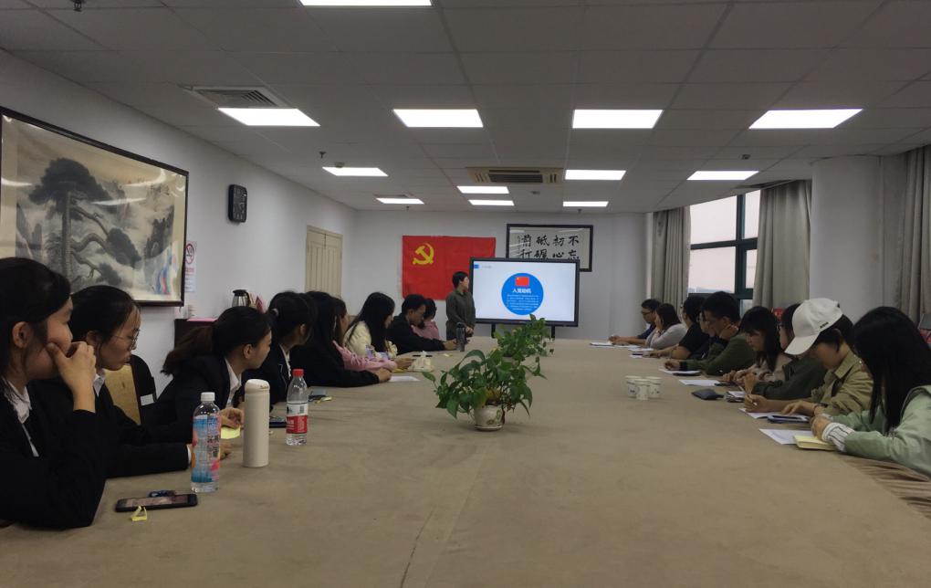 108日下午,外语学院学生党支部在奉浦校区行政楼407举行了2019年下半年入党发展对象答辩会。外语学院学生党支部全体成员和非党员学生代表担任了答辩会评委。10名入党积极分子经过前期综合评定筛选参与了答辩。学生党支部书记胡安华主持了会议。
