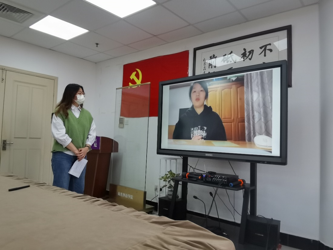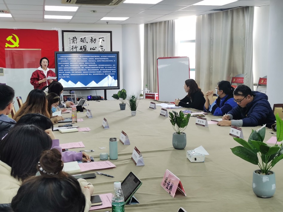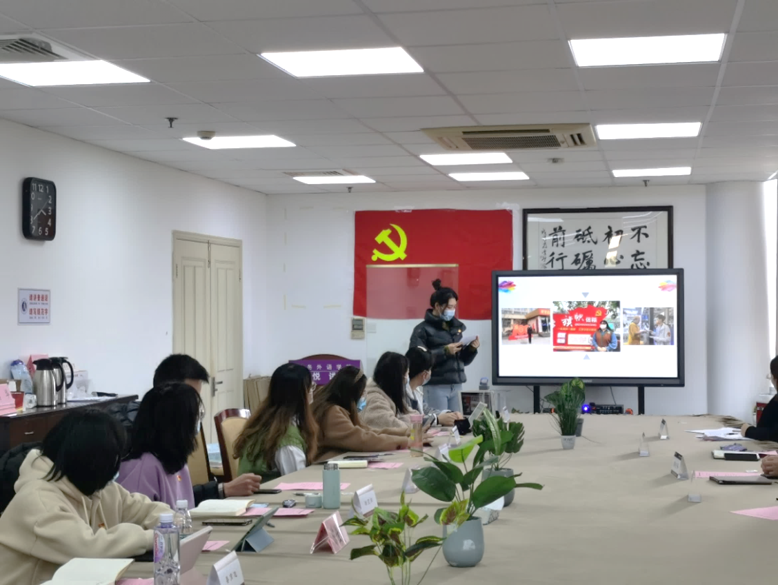 “从大学到社会,从党员到先锋”——学习先进榜样,争做党员先锋。学生党员李数和孙钰慧结合寒假期间开展的采访身边党员榜样活动,分享了小组的采访内容和心得体会。不论是在教育行业乐于奉献、敬业爱生、坚持学习的党员赵幸旸,还是在银行岗位上服务他人、恪尽职守、努力提升的党员端木雯霏,都在用实践行动践行共产党人的初心和使命,诠释为人民服务的内涵。