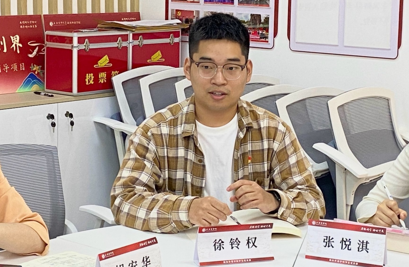 图为国家奖学金获得者、学生党员徐铃权分享成长经历