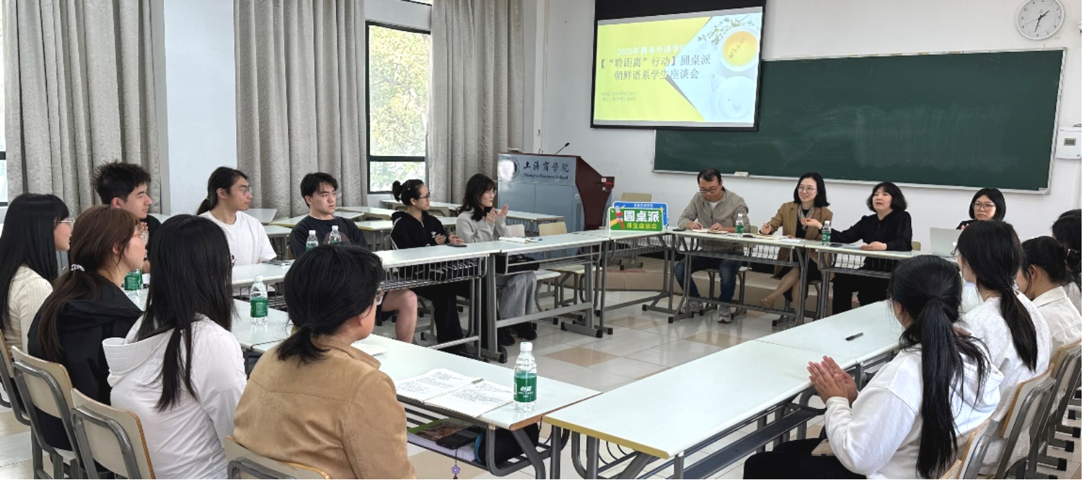 3月25日,商务外语学院朝鲜语系于3教209教室举办学生座谈会,该座谈会是学院“聆距离”行动圆桌派系列活动之一,旨在通过这一系列活动进一步加强师生之间的沟通与交流。此次座谈会深入探讨了学生的学习、生活需求与困惑,并共同谋划朝鲜语专业的人才培养方案及未来发展路径。出席本次座谈会的有商务外语学院书记余绘平、党总支副书记、副院长胡安华、朝鲜语系主任崔海燕、副系主任申美花以及朝鲜语系全体教师和辅导员赵思博。同时,朝鲜语专业大一、大二和大三的学生代表也参与了此次会议,共同为朝鲜语系的未来发展献计献策。会议由朝鲜语系副主任申美花老师主持。