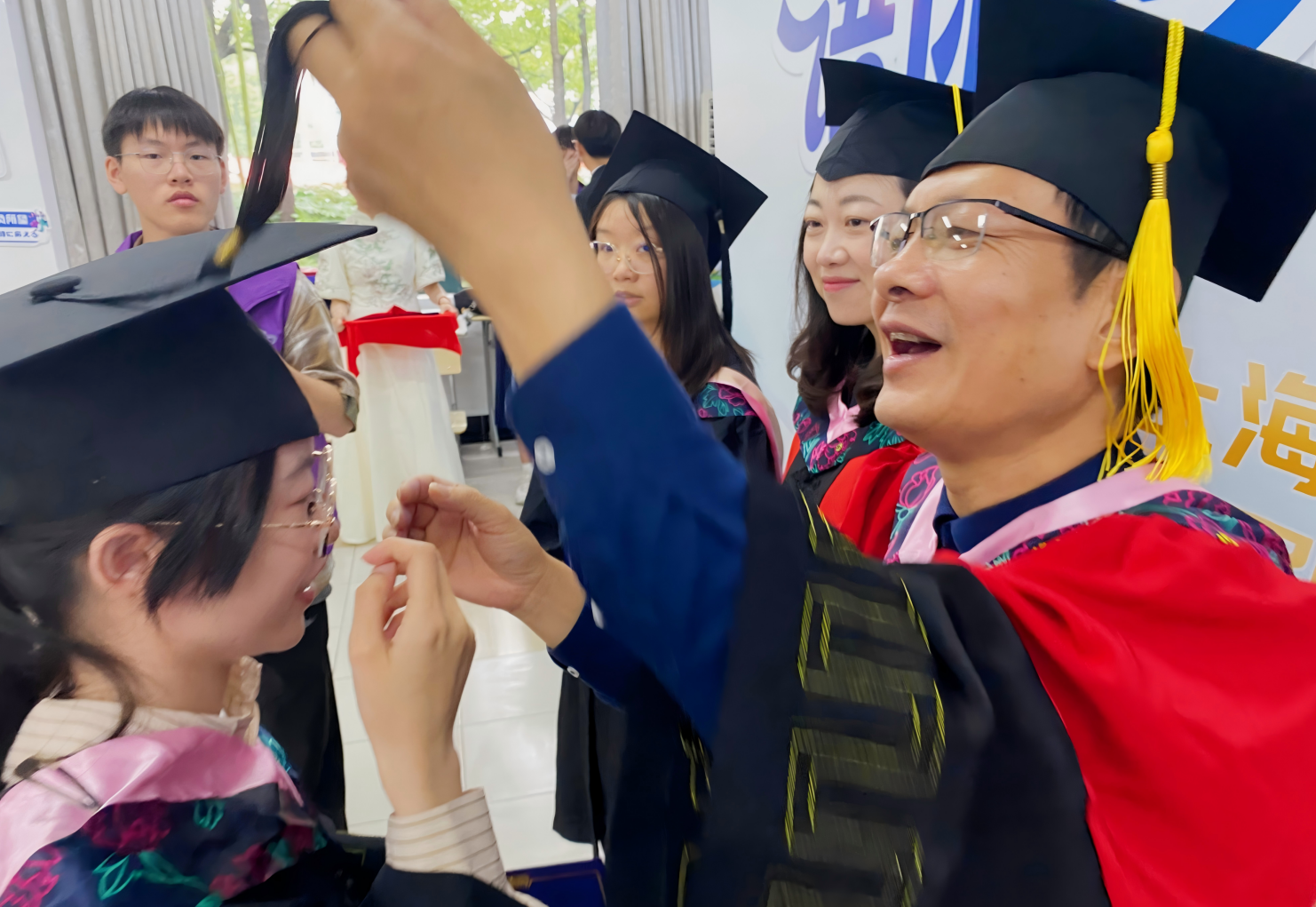 最激动人心的时刻当属学士授予仪式。学院领导与各专业教师代表依次为 毕业生拨穗正冠,颁发学士学位证书,并送上最真挚的祝福。当流苏从右拨到左,象征着毕业生们学业有成,即将开启人生新旅程。