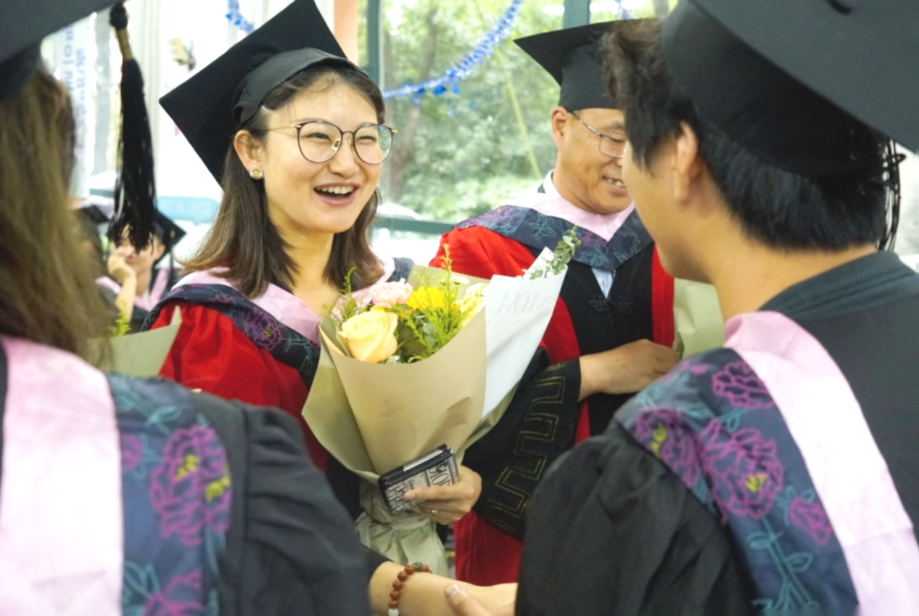 随后,温馨感人的献花环节上演。毕业生们手捧鲜花,走向四年来默默付出、悉心教导的老师们。一束束鲜花,一句句“老师,谢谢您”,将感恩之情传递得淋漓尽致。