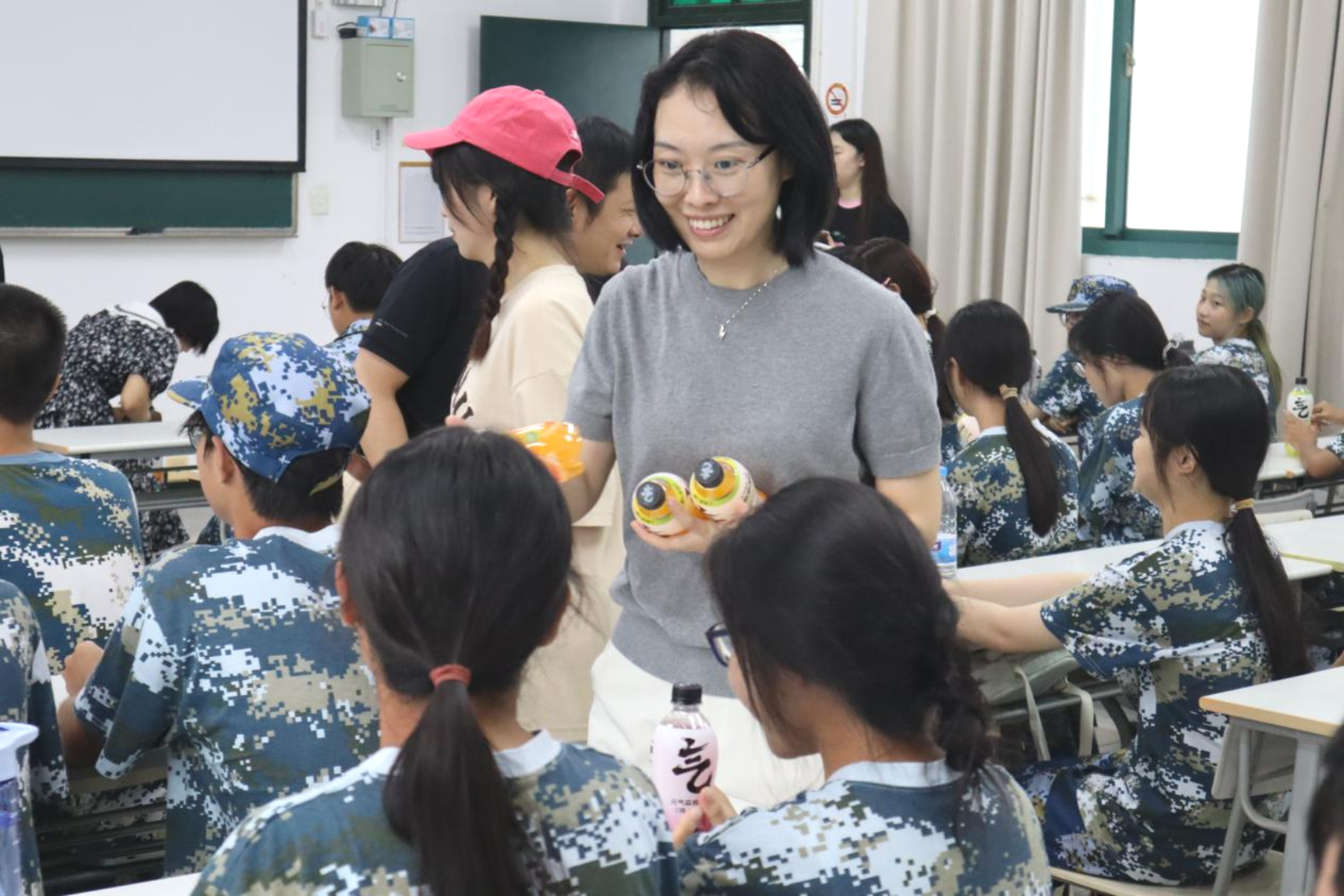9月19日下午,商务外语学院党总支书记余绘平、党总支副书记、院长段俊晖及2024级新生辅导员杨成颖前往军训训练教室慰问2024级军训学生。