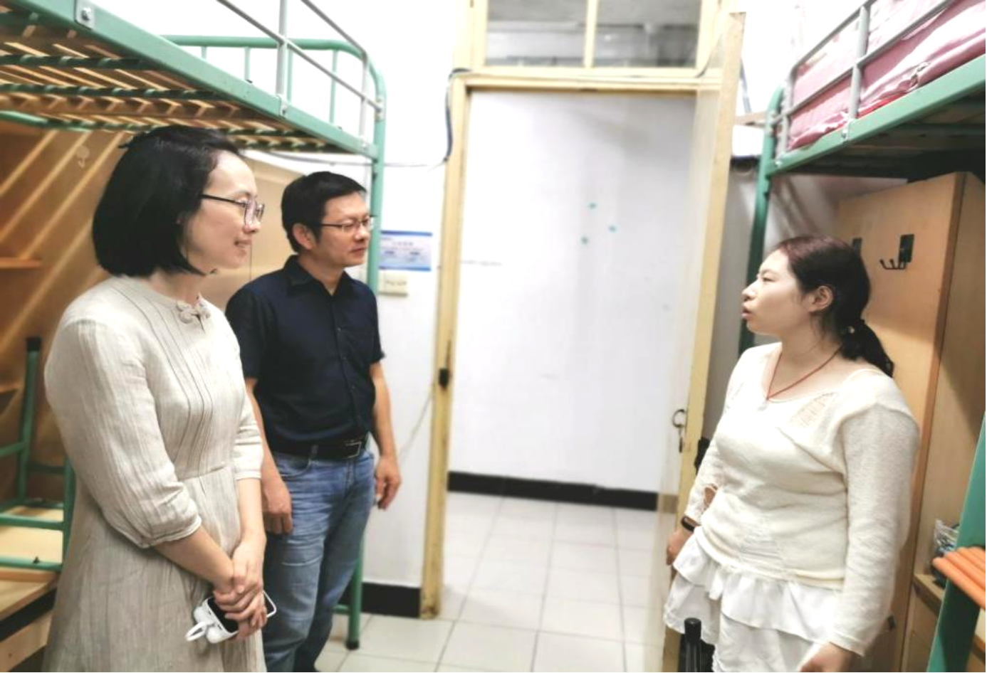 新生报到当天晚上,学院领导余绘平、段俊晖、胡安华和新生辅导员杨成颖一起走访新生宿舍看望新生,与同学们进行亲切交流,解答同学们关于学习和生活上的疑惑,鼓励他们加快适应大学生活、加强与老师沟通,树立明确目标,做好规划。