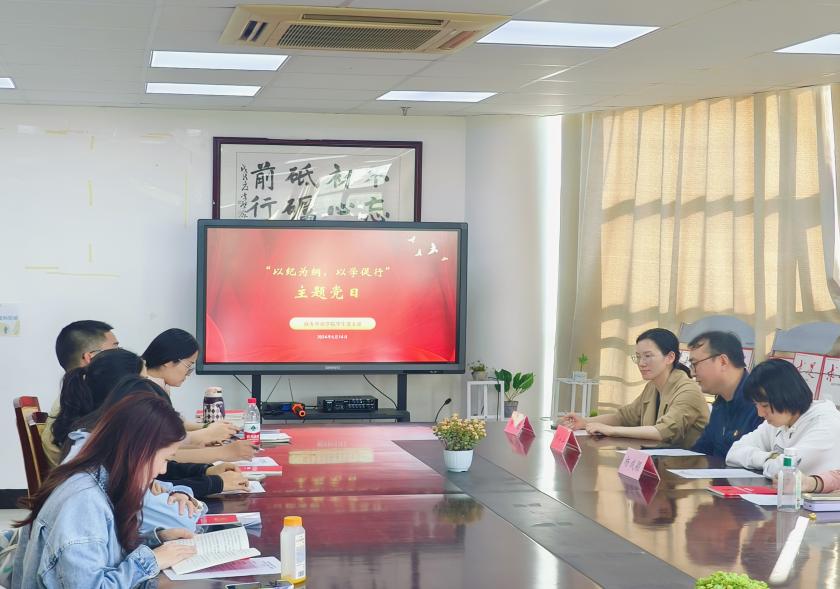 为进一步深化党纪学习教育,增强全体党员的党性修养,商务外语学院学生党支部于5月14日下午在行政楼407会议室开展“以纪为纲,以学促行”党纪学习教育主题党日活动。党支部全体党员参加了活动,活动由支部书记杨悦主持。