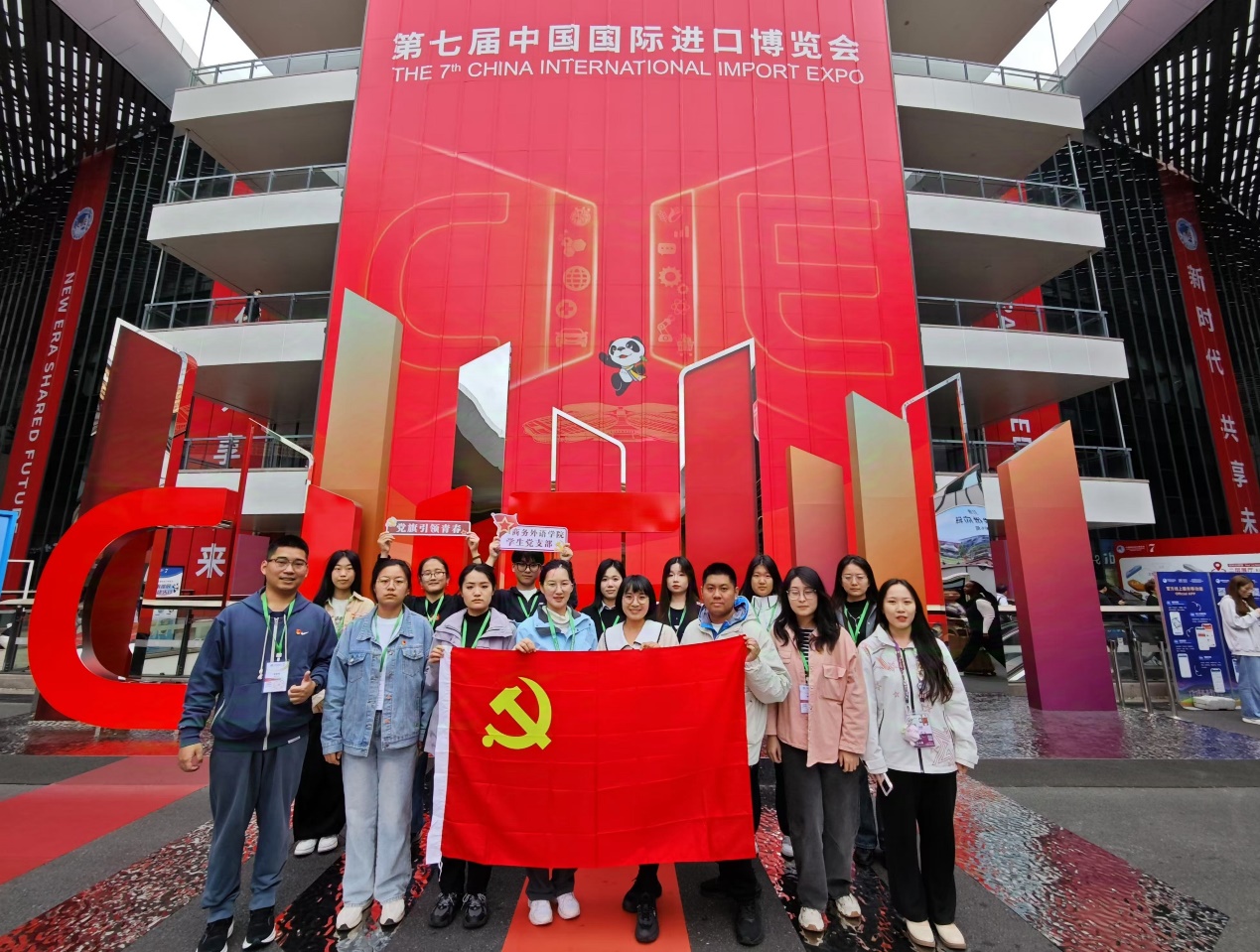 为充分贯彻落实党的学习宣传贯彻党的二十届三中全会精神,实地感受我国对外开放新格局,以第七届中国国际进口博览会为契机,11月9日上午,商务外语学院学生党支部在国家会展中心开展主题党日活动。本次活动由支部书记杨悦主持,支部全体党员参加了本次活动。