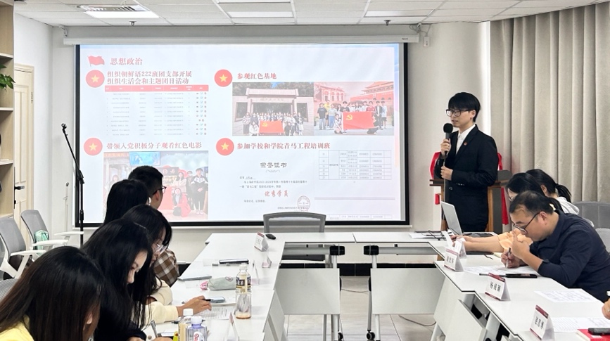 为进一步规范发展党员工作,严把发展党员质量,10月15日下午,商务外语学院党总支在行政楼407会议室召开了2024年下半年发展对象答辩会。学院党总支副书记、副院长胡安华出席会议并讲话。学生党支部师生党员、入党介绍人、入党积极分子、学生代表观摩答辩会并担任评委。本次答辩会由学生党支部书记杨悦主持。