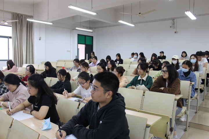 凌霄鹏以“用英语讲好中国故事:‘两会’的英语表达”为引入,介绍“两会”的职能作用等基本情况,重点解读“两会”语料翻译中的易错点,帮助同学们从中英文角度更好理解把握“两会”的相关表述。他从 “2023年工作回顾”“2024年经济社会发展总体要求和政策取向”以及“2024年政府工作任务” 等三个方面入手,对报告中的重点语句进行了详细阐释、逐词辨析。