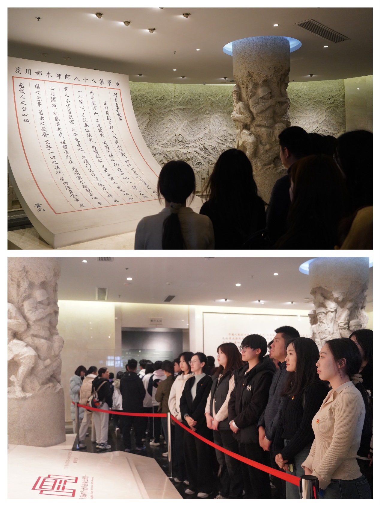 光影定格峥嵘史,青春接力守铁规。在参观抗战纪念馆的过程中,学生党员们用镜头记录下“严明纪律”“清廉作风”“违纪警示”等纪律印记,定格一幕幕发生在四行仓库的历史画面。支部成员们纷纷表示,此次清明主题活动不仅是缅怀的时刻,更是校准纪律坐标的契机。作为新时代的学生党员,既要守护先烈用生命捍卫的信仰,更要以严明纪律护航事业发展。历史与当下在此共鸣,奏响新时代铁纪传承的强音。