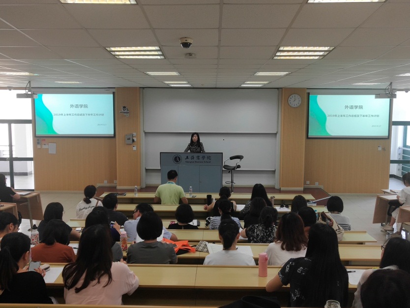 严玉萍院长先是对2019年上半年的工作做了总结,然后明确了2019年下半年的工作目标。会上,严院长全面部署各项重点工作,鼓励并激励全院教师明确工作目标,积极实践,不断提高自我,落实各项工作内容,为学院发展贡献自己的一份力量。严玉萍院长对上半年的工作给予了高度认可,上半年,学院在党建、教学、科研、学生管理、对外交流和国际合作、工会及各系部工作方面都取得了不错的成绩。严院长强调,在“不忘初心,牢记使命”的思想指导下,学院全体教师要充分认识到自己的不足之处,完善各项工作,督促教师不断进步。