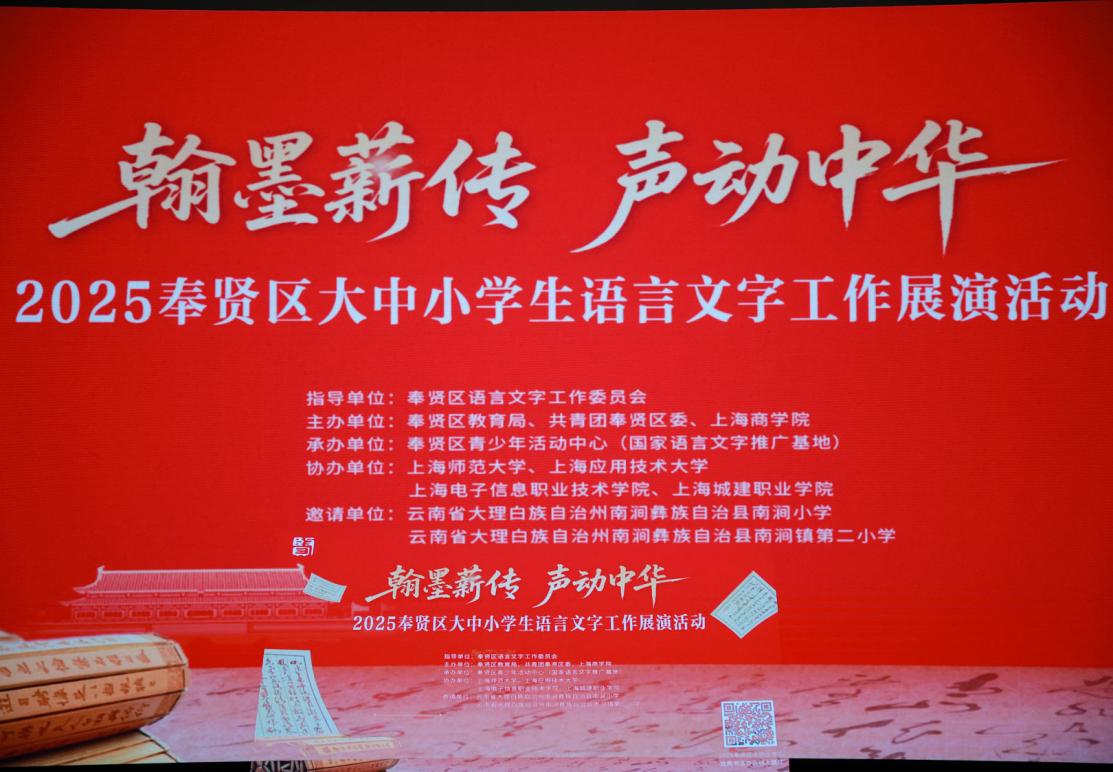 此次语言文字展示展演活动的成功举办,不仅集中呈现了奉贤区大中小学生在书法创作、语言艺术领域的丰硕学习成果,更营造了 “说好普通话、写好规范字、读好经典书” 的浓厚氛围。作为本次活动的主办单位之一,上海商学院始终高度重视语言文字工作,积极投身中华优秀传统文化传承与区域教育协同发展事业。学校充分发挥自身教育资源优势,协同奉贤区语言文字工作委员会、区青少年活动中心等多家单位,精心筹备活动各项环节,从前期策划协调到现场组织保障,全程注入高校力量,助力活动高标准推进。